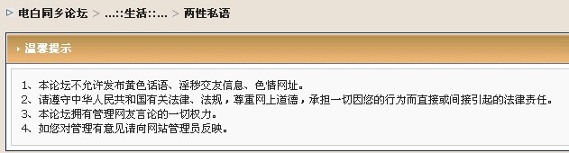 鄙人认为,这个论坛是有在校学生和未成年人看的,看到这个论坛还有校园版块呢,有些内容实在太色情太露骨了,对青少年不利啊!也不要让别人以为电白人都是这样的,拜托!!!!