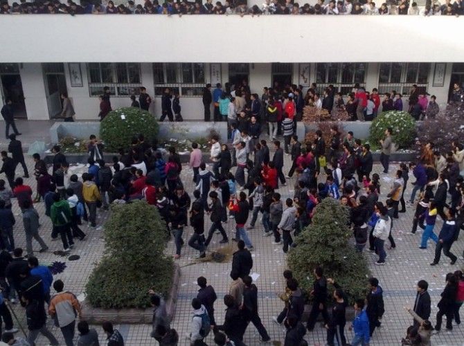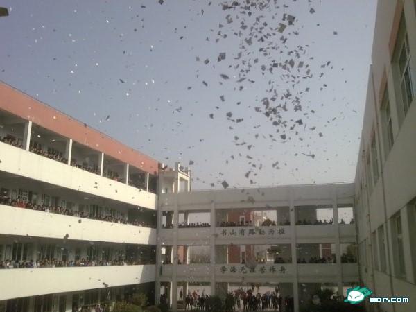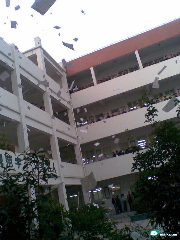 今天,高三所有同学都怒了,爆发了。从下午第一节课下课开始,每个课间所有同学全部从教室出来,拿着撕碎的纸和旧书,全部往楼下扔,有的班甚至直接拿垃圾筐往下倒。起因是某个班(大家都知道)的数学老师由于上级领导的恐吓不得不上课,课上到一半被别的老师看到,叫走了。大家不满学校的做法。