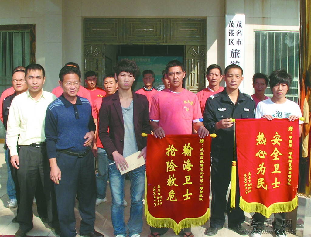 “真感谢你们救了我们的性命,今后我们再也不敢去非泳区游泳了!”本月12日上午,在茂港区旅游总公司门前,两名学生模样的男子紧紧地握住第一滩风景区数名救生员的手,连声道谢,并送上了锦旗。原来,这两名来自我市某技校的学生在第一滩风景区外面的非泳区游泳溺水,幸被在景区内巡逻的救生员及时发现,把他们救上岸。两名学生用自己差点就失去了的年轻生命再一次警醒市民,千万不要前往非泳区游泳。