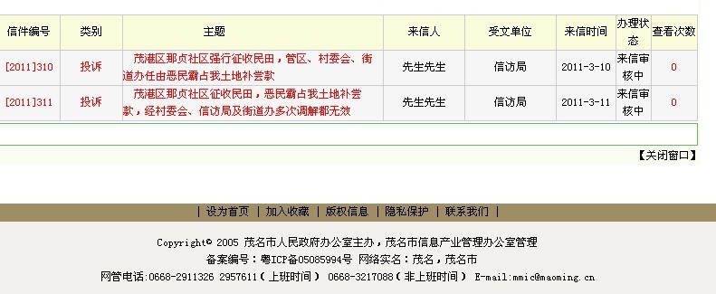 直到今天在茂名政府网的投诉信还在审核中…………