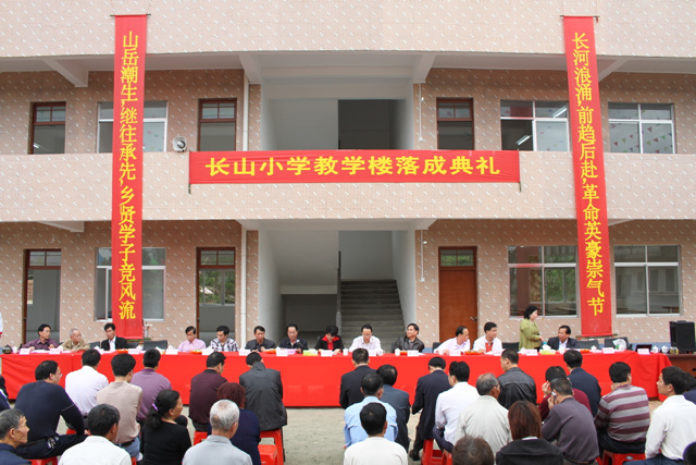 长山,山环水抱,沃野千畴,楼宇栋栋,竹木掩映,安祥、宁静、优美的村落!这里的人民勤劳、纯朴、善良、热情、好客、豪爽。钟灵毓秀,人文蔚起。文人墨客、政要巨贾,屡出不鲜,多有建树。去年到长山小学参观,人事多有变迁,房舍树木依旧,当时就有些许惆怅与失望。时隔一年,欣闻教学楼落成,可喜可贺,是以为记也。
