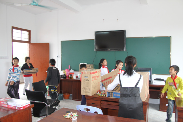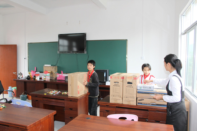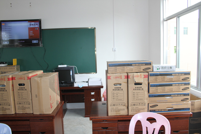 新教学楼落成,校友慷慨捐赠的电脑、投影仪、步步高学习机、读书郎学习机、摄像机等