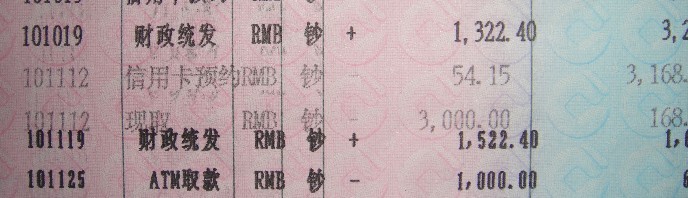 按楼主的存折看来,3月份是2413.20元(跟你所见好像不同哦),4月份是2013.20+688=2701.2元,虽未含社保,但也包括绩效工资。中一职称如此工资,包括绩效部分(多少?),好像也不是太少啊。