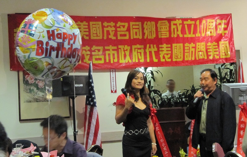 美国S界昨晚e行盛大庆祝茂名同乡会成立十周年晚会。除了我和论坛的Strong大哥,还有来自水东,沙院,小良和七迳的电白和茂港的同乡,其它大部分人士都是来自高州的宗亲。
