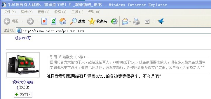 观珠有人跳楼,演变成堵路事件,武警下来了 (2人在浏览)