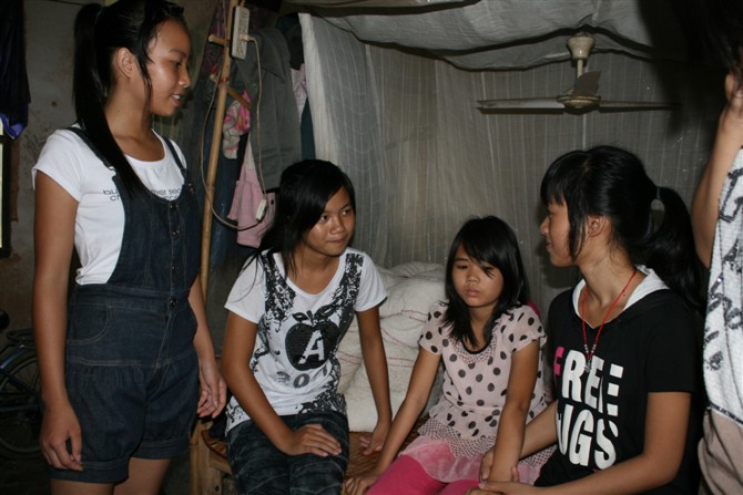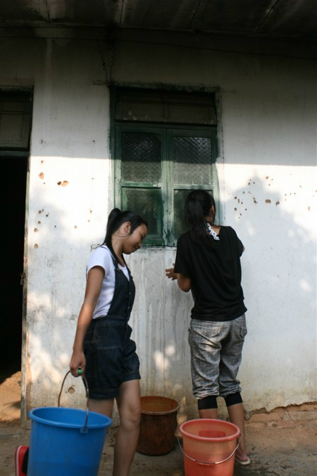 有同学发现院子里有小孩子的衣服,觉得奇怪就问了一下院子的老人,老人说他们收养了一个小女孩。小女孩已经很大了,去过一回学校,回来的时候把老人们给她买的书包弄丢了,之后就再也不肯去学校。很多同学围着小女孩的房间,我也挤了进去・・・・・