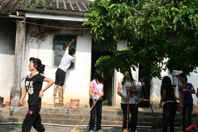 或许不久的将来,老人会与世长辞,这个擦窗修凳子的男同学也忘记自己看到的这一幕,但我想他会永远明白一些东西。 院子里已经开始干净起来,没有了落叶,没有杂草,窗户被擦掉那层厚厚的灰尘。汗水染湿了每一位同学的衣服,可是没有人愿意让自己闲着,尽管可以做的事情越来越少。