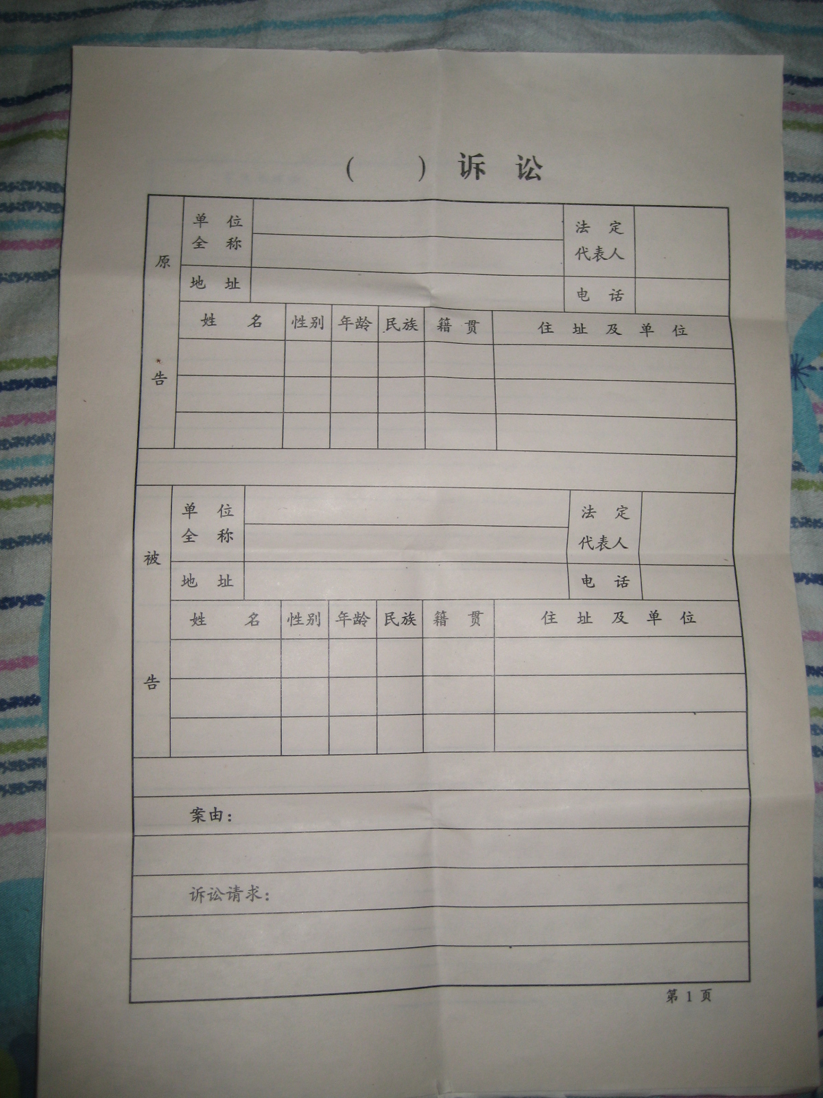 接着,我上了三楼,进了电白法院的办公室,凭感觉走向一个看起来有点像负责人的同志,开口问他:“给我一份行政状纸!”