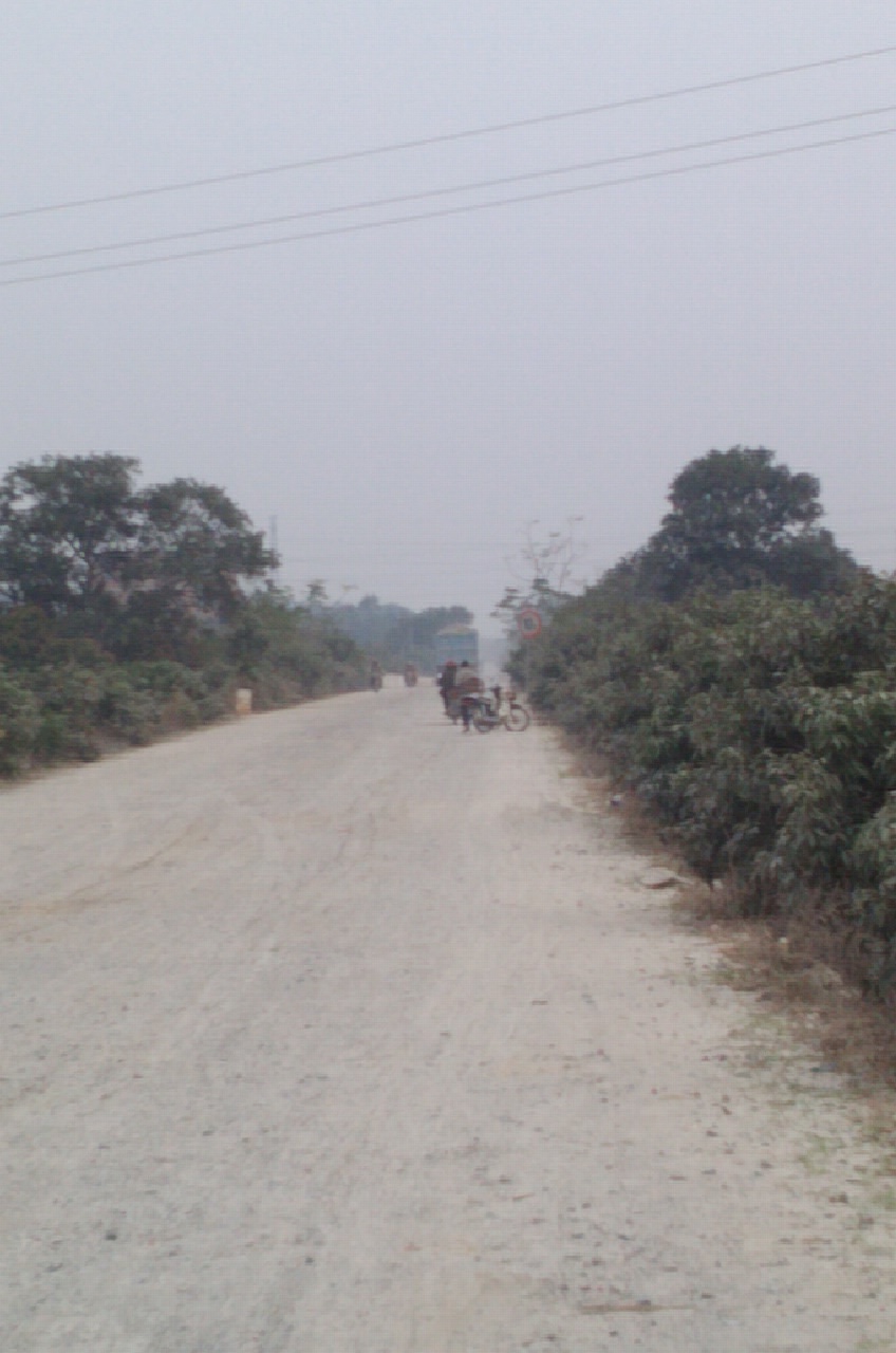 下午四点五十分左右,途经霞洞新河桥,发现前方有两辆载满沙子的东方车在慢吞吞移动,因为那是霞洞烂路超烂段。东方车前面还有一辆半男女摩托车,车后搭着很多蔬菜,看似是收市的菜农!摩托车前进也非常慢,因为这样的烂路谁也不敢快。