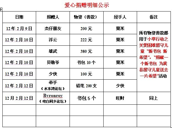 爱心捐赠明细公示