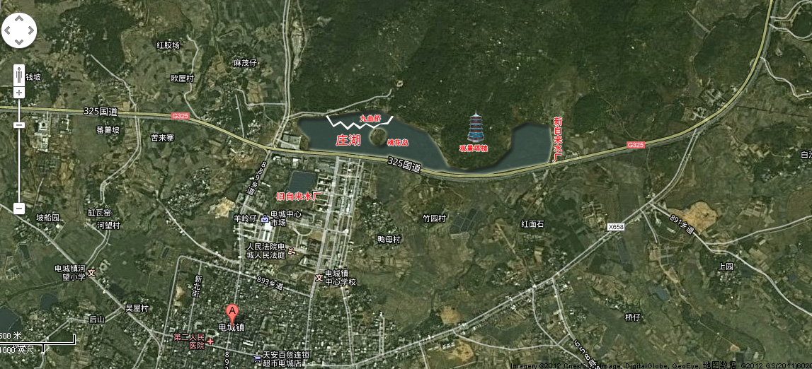 电城欠水库的地方还是挖湖为好,,,功在当代,利在千秋啊!公园绿道起什么名称不重要,“庄湖”非一定要建起来,把自来水厂迁去,把现在的自来水厂的池,,这些土地还可以开发房地产,挖满地红桩的挖工也省了很多,,可以做地下停车场!假如我这个方案通过,镇政府要奖我一套房哦。。哈哈 [attachmentid=291788] 改电城卫星地图