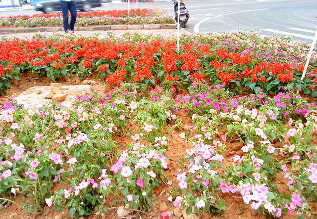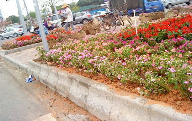 今天下着雨,经过三角墟红绿灯时,见到工人们在灯柱下忙碌种植鲜花,远近观看还挺显眼的,也引来众多途经此路段的行人不少目光,但不知这些花能否挺得住多久. [attachmentid=293482] [attachmentid=293483]