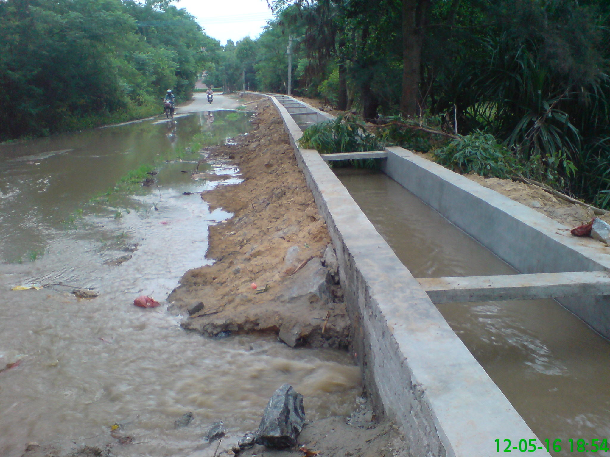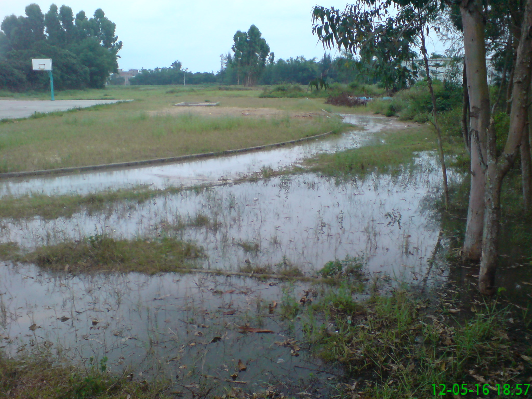 旦场镇红花坡小学西北角的水渠有一涵洞无障碍放水漫公路已经多日,似处于无人管理的状态。 看这个涵洞,显然是建设者有计划做的的,但不知道眼下没有睹塞的原因。 现在的水排到公路上,漫到小学的运动场,似乎和农业灌溉全无关系。 想起近日博贺停水,这些白花花的水要是流到港区供饮用或制冰,那是真正造福于民。现在流给荒地,令人路人心痛。