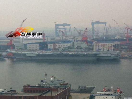 [attachmentid=300720] 【环球网综合报道】2012年9月23日下午16时许,中国第一艘航母平台16号舰在大连举行交船仪式,16号舰与相邻停泊的88号舰全部挂满旗。16点40分,16号舰舰桥桅杆升起五星红旗,舰首升起八一军旗,舰尾升起海军旗,17点20分,交船仪式完成。16号舰不日将驶出大连港,前往海军航母驻泊锚地,在航母驻泊锚地,将举行16号舰入役仪式。