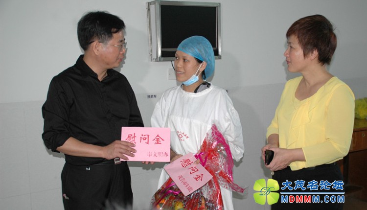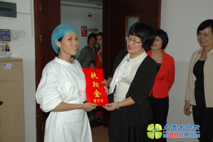 上午11时许,茂名市妇联、市文明办也相约来到市人民医院探望小雅思,给小雅思送来了水果、慰问金和对小雅思的祝福。