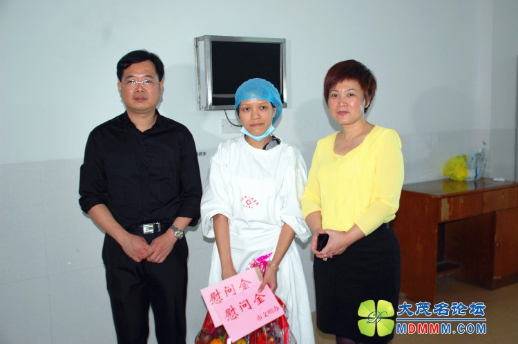 31日下午16点许,电白宣传部领导带着社会各界捐赠的10000元善款来到市人民医院慰问小雅思,并送上了电白人民的祝福。