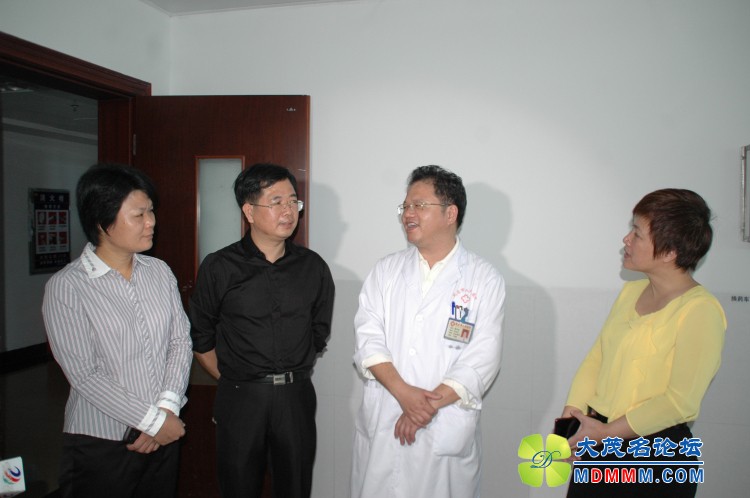 妇联主席及文明办领导跟小雅思主治医师和小雅思的妈妈交谈,了解小雅思现状和小雅思进行植皮手术的日期