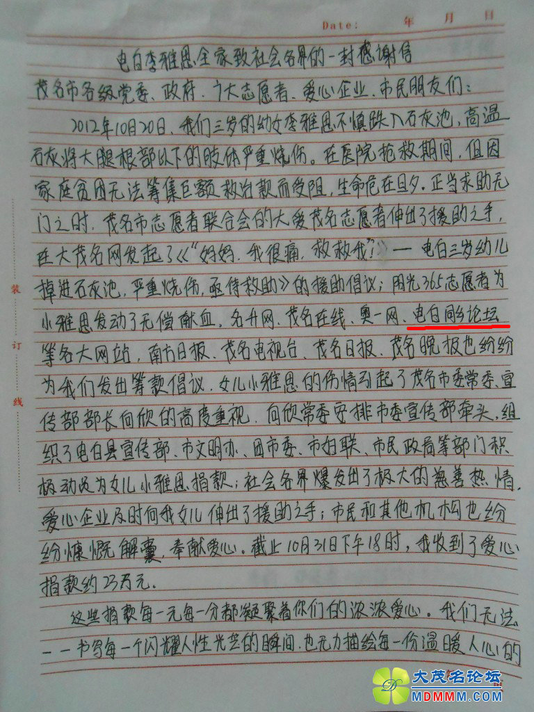 小雅思致社会各界(电白同乡论坛)的感谢信