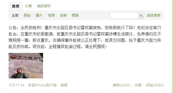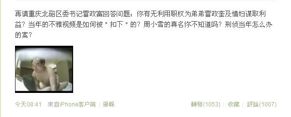 Z:[灌水]重庆市政府新闻办:雷冠希同志操劳过度被免职