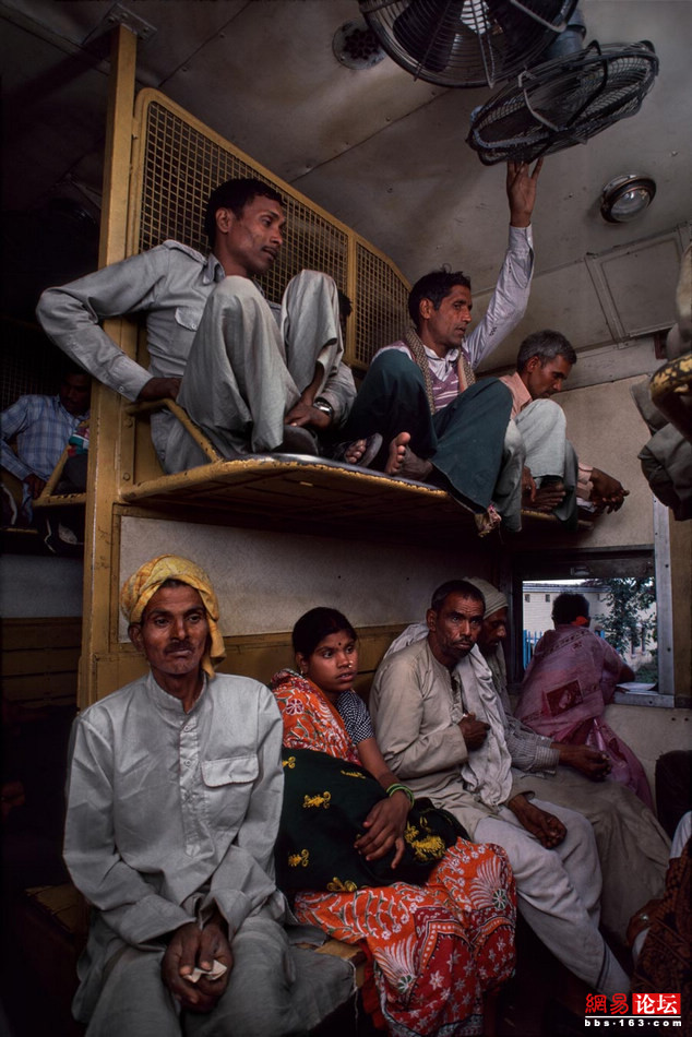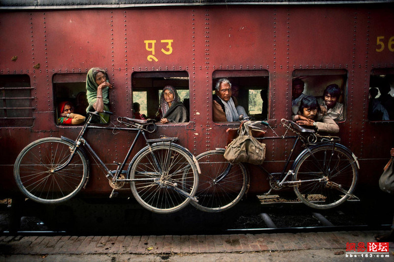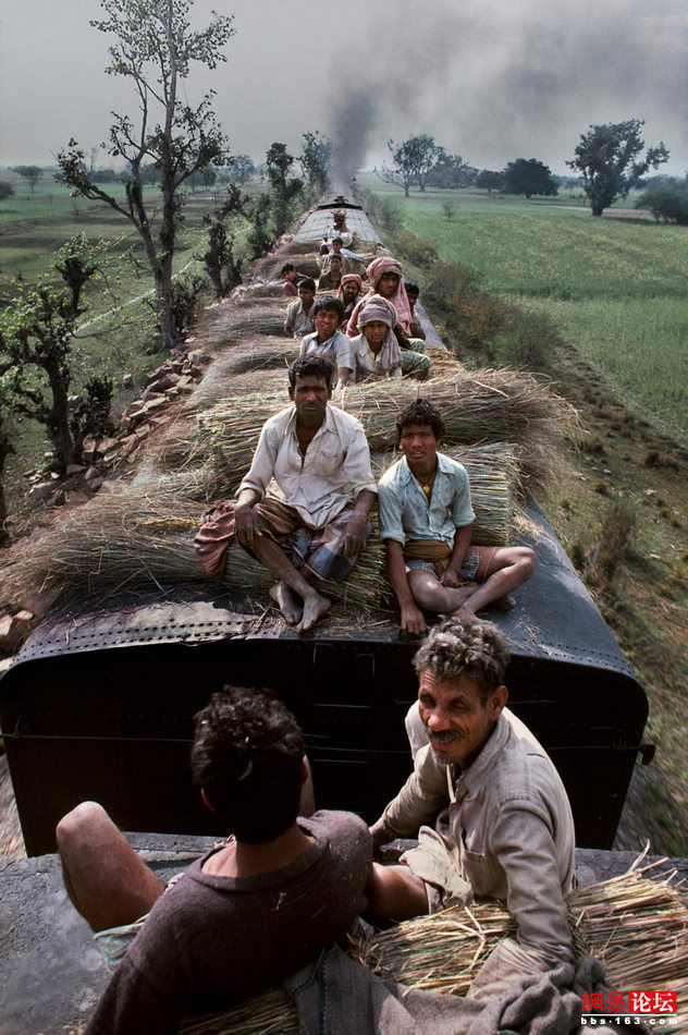 因作品《阿富汗女孩》(Afghan Girl )出名的旅行摄影师Steve McCurry近日推出了一组以“印度铁路”为主题的照片。作品真实纪录了印度民众的交通生活,给读者留下了深刻印象。这组照片的题目就叫 “火车”,反映出其实大部分印度百姓出行并非娱乐观光而是迫于生计。画面中,有些乘客攀跳上已经开动的火车, 还有的坐到了铁皮车厢的厢顶。看到此情此景, 读者不由得感慨印度百姓的生活之艰辛。