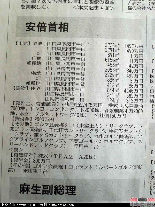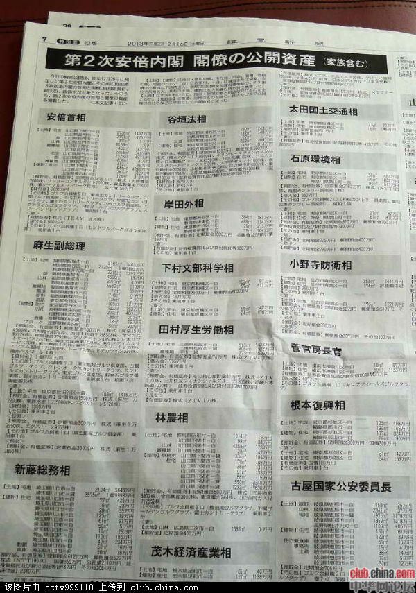 今天的报纸公布了日本国家领导人私人财产 2013年2月16日,《读卖新闻》公布了日本政府领导人的详细私人财产(包括家属) [attachmentid=308777] [attachmentid=308778]