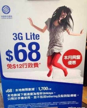 中国移动在香港推出68港元(55RMB)套餐:1700分钟通话、10000条短信,无限上网流量。而内地58元套餐:350分钟,10MB流量,短信单独收费(各地不一)。难道我们的生活水平比香港高100倍么?!这个套餐在香港并非最低,原因是香港有竞争。