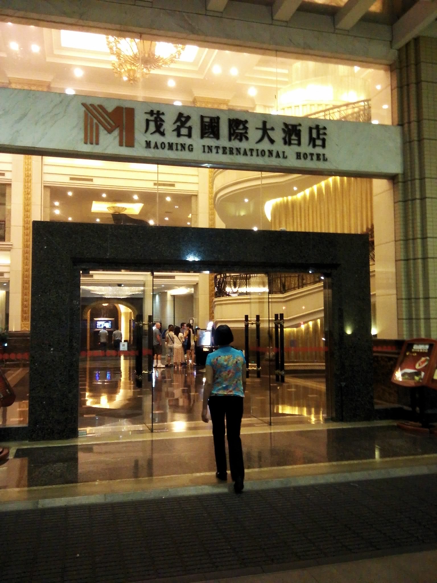 为了及时明早搭车,另个跟老婆结婚三十年之久还未在外住过旅馆,所以今晚先在茂名打头阵,亨受下星级宾馆,就下榻茂名国际大酒店。哗,双人房一夜四百多元,老婆听了真的心痛那几个钱,说叫你明早早点来不用花那么多钱。我却认为就是多花二三百元钱,但亨受下星级服务值得,这也是我有生以来第一次住那么贵的宾馆了……