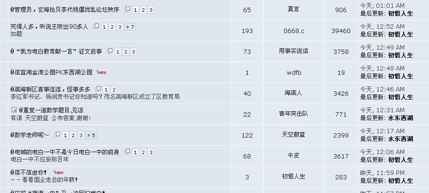 QUOTE(政虎 @ 2014年12月05日 Friday, 10:31 PM) “玄海拾贝,初悟人生”此人的说话能力有点强,敢于反映事物,敢于揭发恶与善。打字也有点快,是个人才。应该电白论坛能容得下此ID。 [snapback]3720351[/snapback] 只要不占首(占领首页),大家还是能宽容的。如果像以前一样,将自己的帖一气全顶上来,呵呵,鬼受得了。 几个人受得了,不等于大家都能忍受。管理员说得清楚,(首页)资源宝贵。 我重复,如果我有几个主题帖都上到首页,我都觉得不好意思了。 不要管别人能不能宽容你,你自己要有道德,有分寸,你以为自己写的东西好,可别人不这么看。你以为自己的东西挡住别人的眼是你的文章有价值,可别人以为是挡道的垃圾呢?