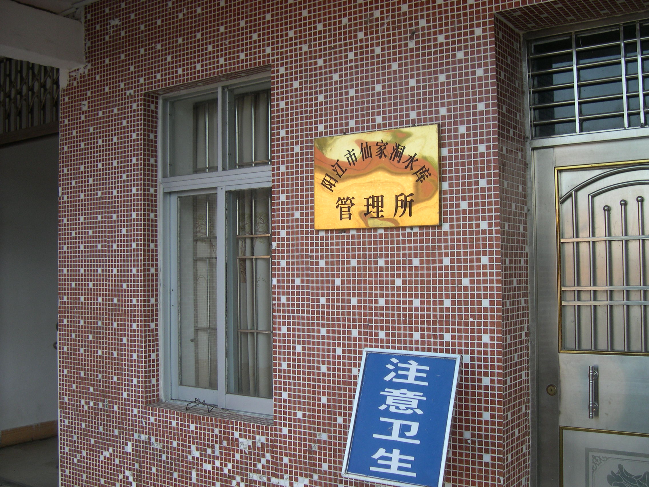 半个小时左右,终于到达水库管理所,所里只有一个人值班,拉着水管在洗刷自己的爱车,问他有没有水饮,回答说会客室有,我们也不客气,走进敞开的会客室小憩,饮水。