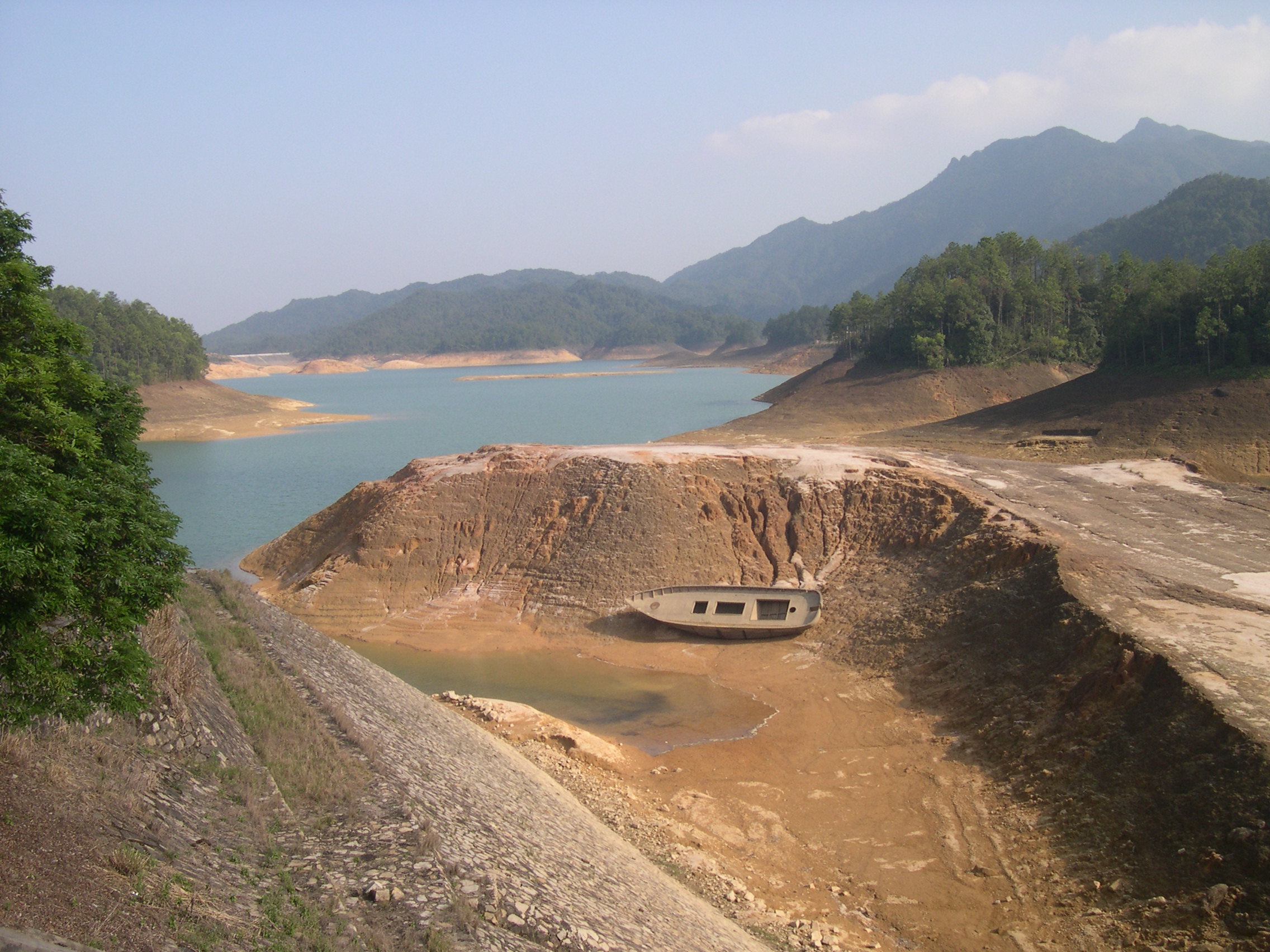 今年降雨少,水库水位很低,裸露的河床是水库的另一面风光。