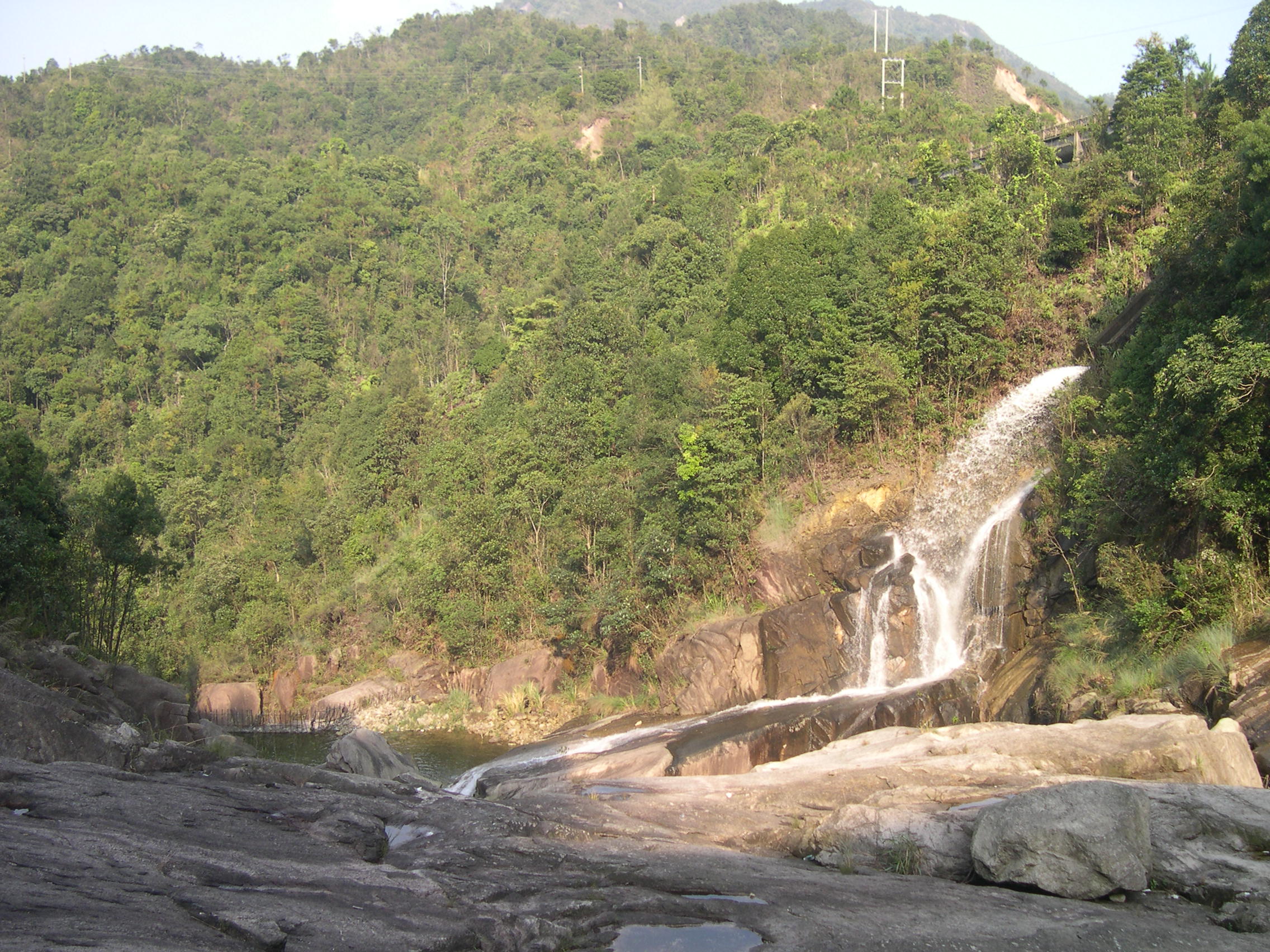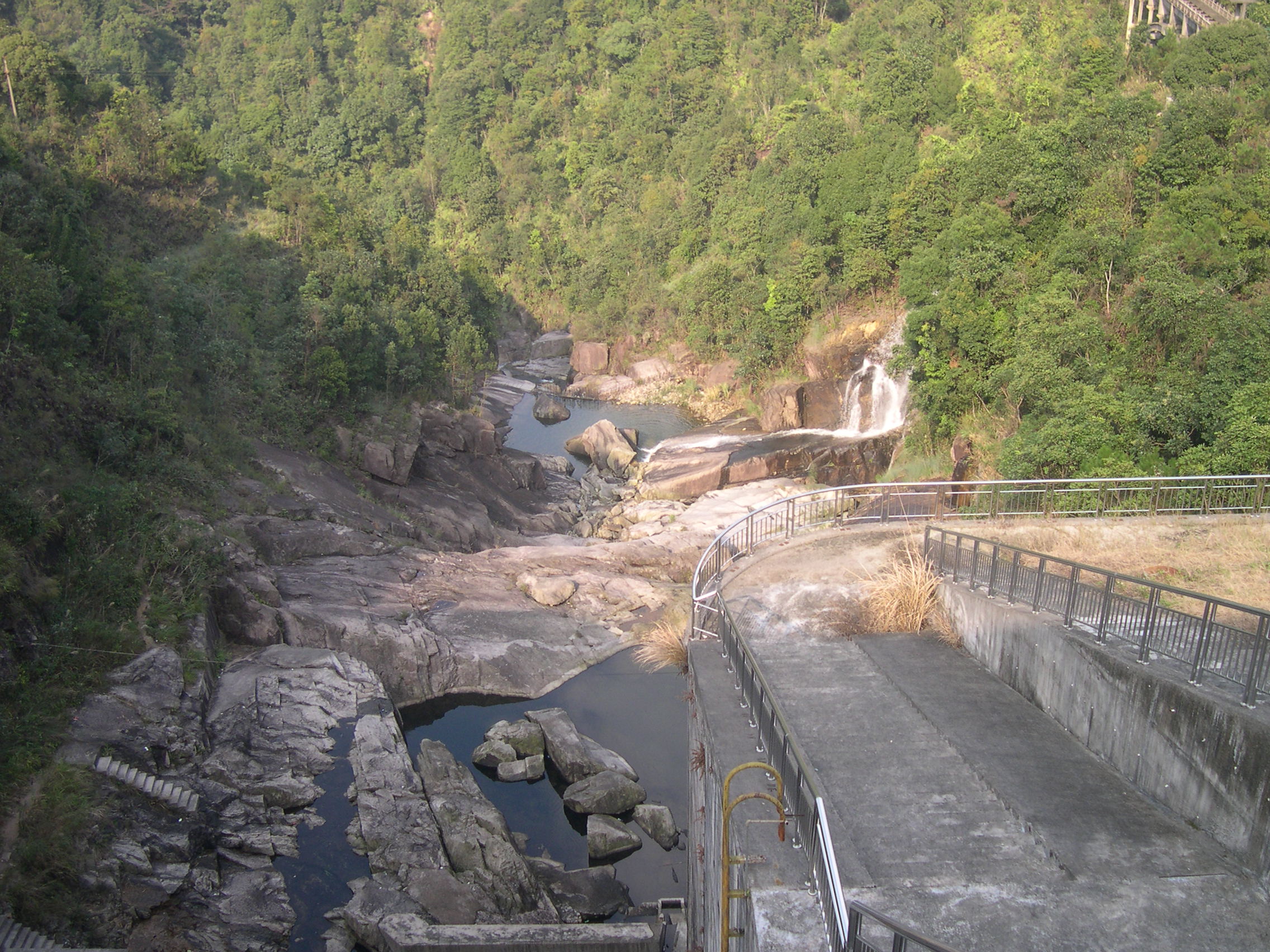 水库坝顶,往右边拐一直走可以到达鹅凰嶂自然保护区,但不让进。