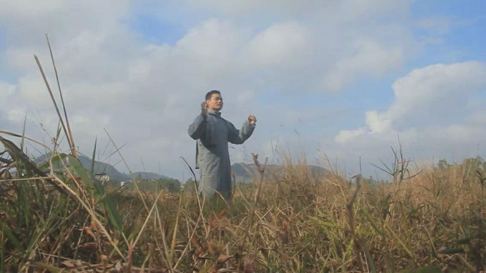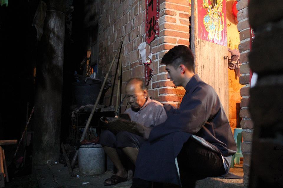 上图为谭育平表演作品微电影《师徒论诗》剧照