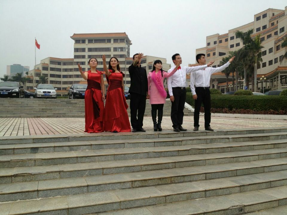 (山人按:刘屏是茂名电视台的主持人,受邀为电白主持《琪昌春节诗会》,图为摄制剧照)