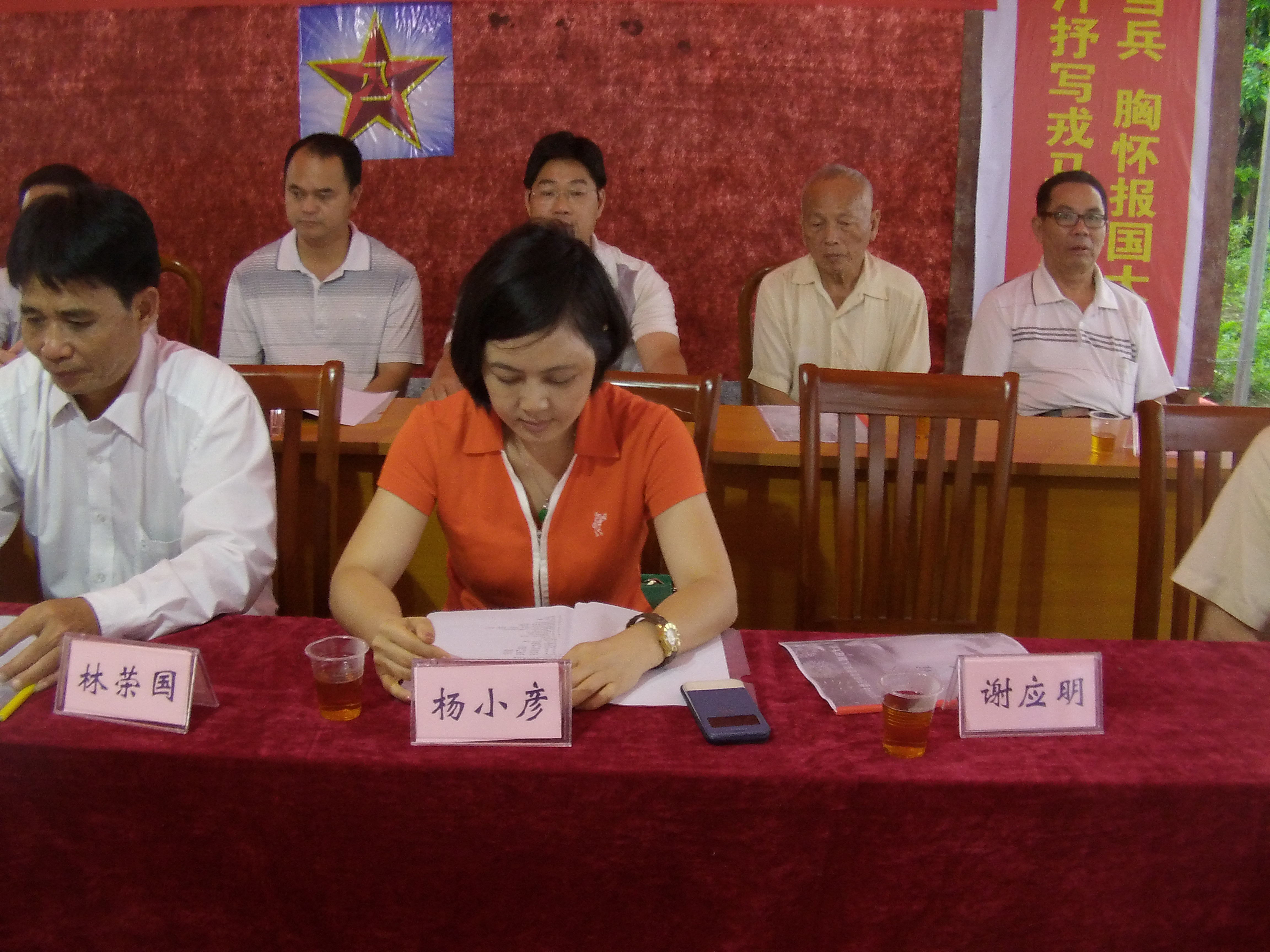 乡贤杨小彦在主席台上,杨小彦女士人现任花都市国土局党组书记,她也为这次活动捐助人民币10000元