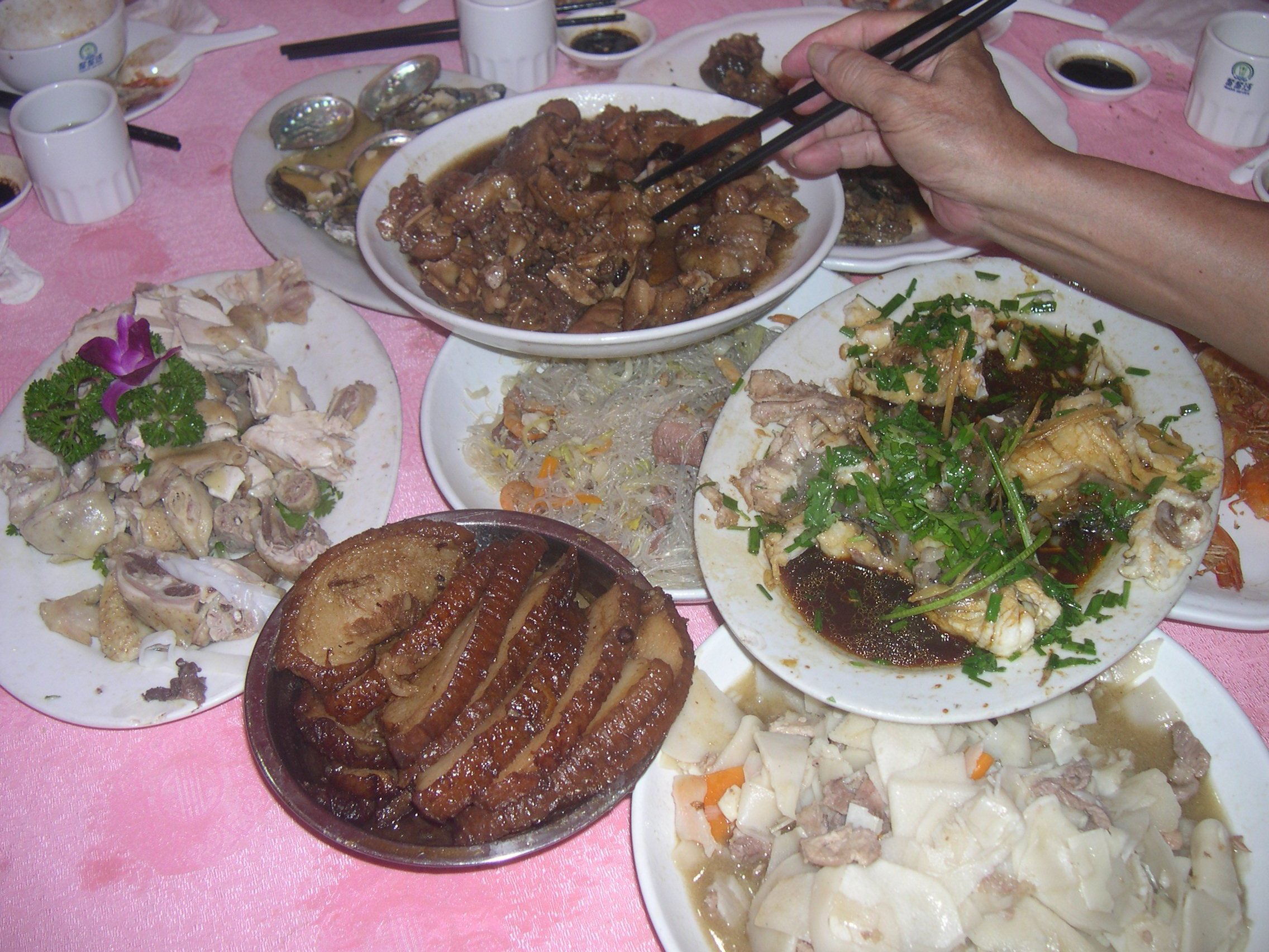 菜式虽然不丰盛,也算可以了,计有十二菜一汤一粥两主食,还有乡贤赞助的正宗罗坑米酒,这对当过兵的人来说,够得上顶级了