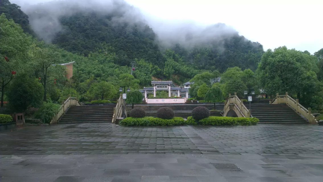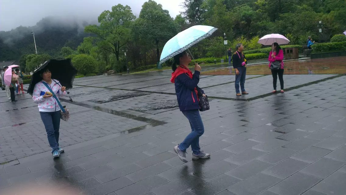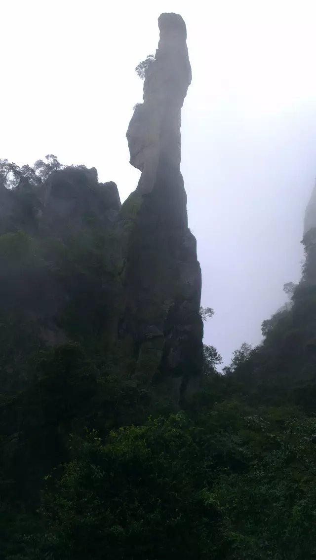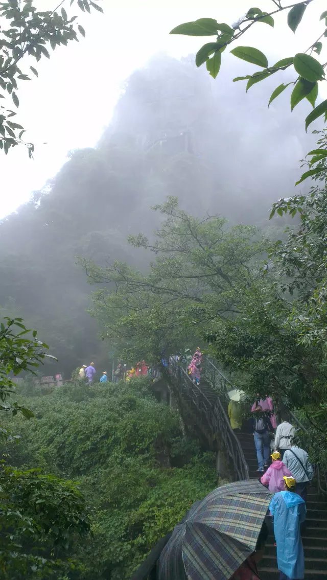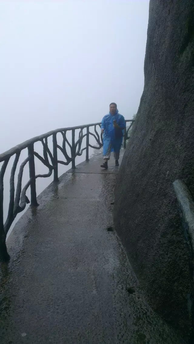 老天不作美,刚下车就下起毛毛雨,三清山罩在轻纱般的雨雾中,朦朦胧胧,更富诗意