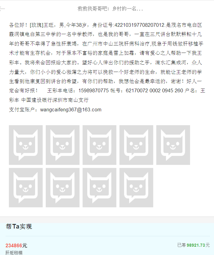 一 一点云 小学三年级 注册 2006-10-21 消息 222 反馈评分 5 点数 1 2015-10-25 #95 大家提防骗子。捐款帐号和众筹平台的不会变。非常感谢你的支持和帮助!赠人玫瑰,手留余香,感恩有你。(电白三中爱心接力团)