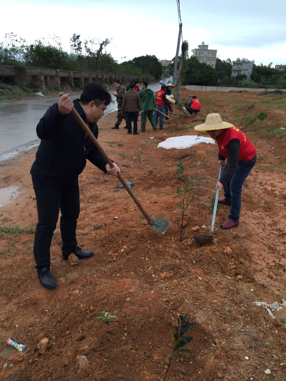 在镇党委书记林涛同志的带领下,大家热情高涨,积极肯干。在植树现场,大家有的扶苗,有的培土,各个环节衔接有序,配合默契,真正是劲往一处使、汗往一处流,充分发扬了团结、互助、友爱的精神。镇班子成员身先士卒、奋勇当先、干劲十足,起到了表率作用。经过一上午的挥汗奋战,一千多棵小树整齐的栽到了道路两旁,在湿润的泥土中奏响绿色的希望,为村道两旁增添了一片生机勃勃的绿色。