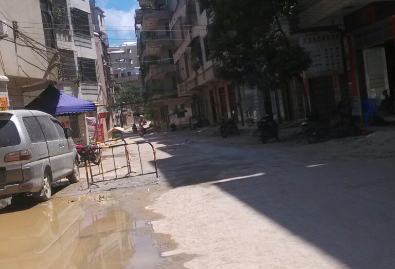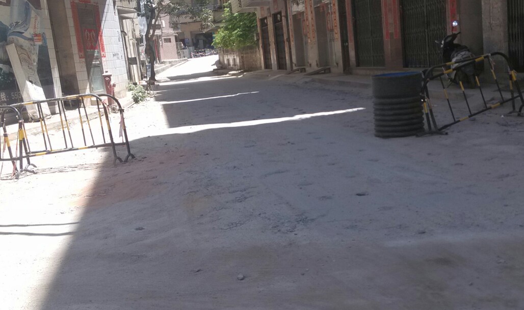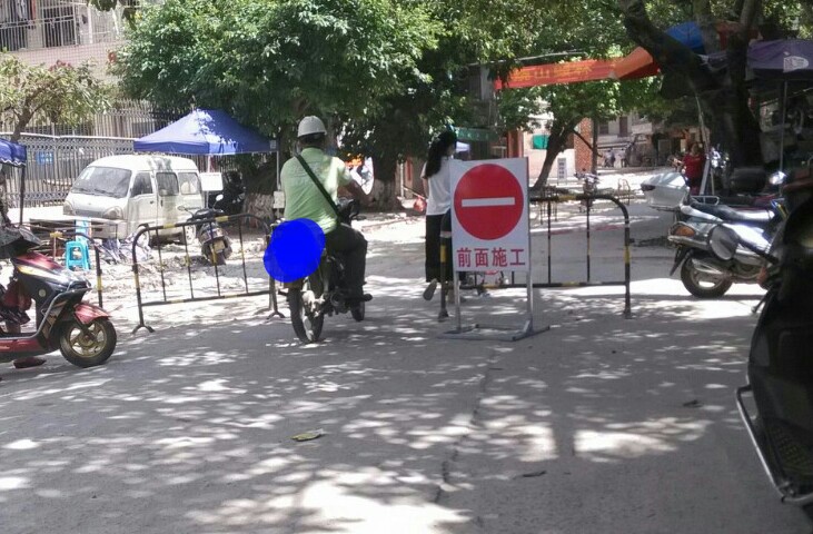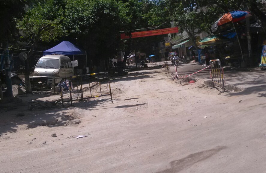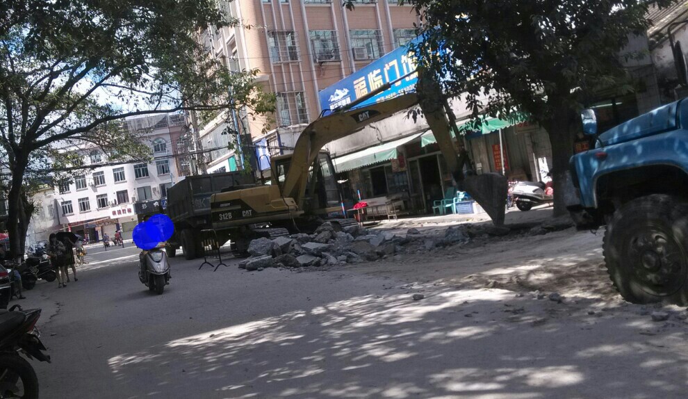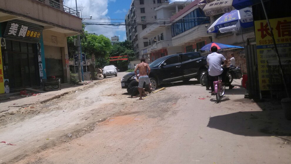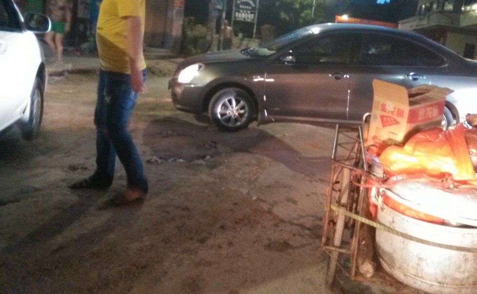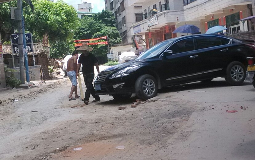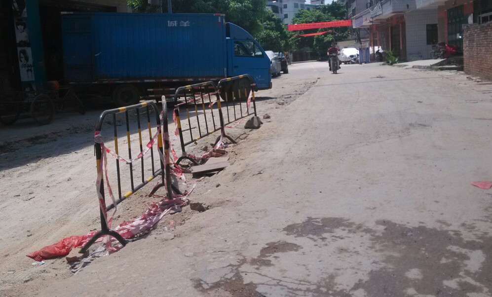 此处左边道路挖了一条较深的坑,不知是铺设排水管或水管或其它,诂计多辆汽车上坡不小心垮落坑内而卡住底盘,后轮都升起来了,虽瓦驾的是摩托,影响不大,但见多辆汽车中招,也挺心痛,或许驾驶者也有一定责任,但有关施工方(不知是公或私行为)能否人性化点,做下暂禁行汽车或警示、、等措施??