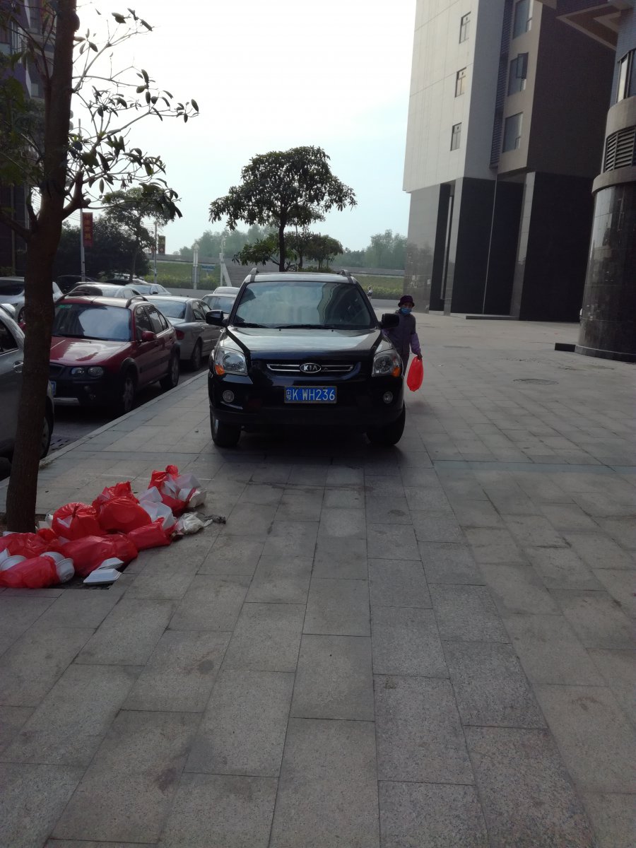 下图是贺胜文利用公款吃喝玩乐后,放置在自家楼下的学校公车。