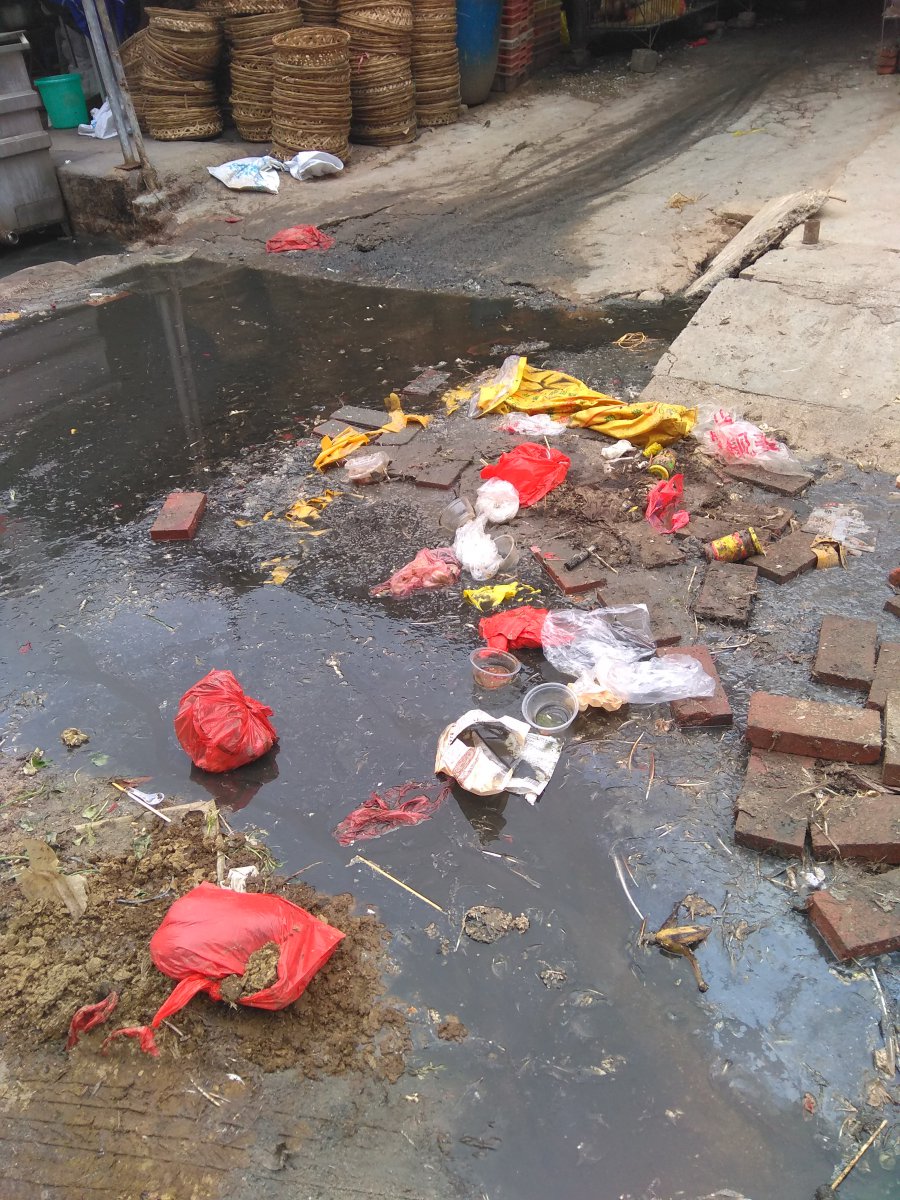 三角圩市场东边排污堵塞,污水堆积,臭气连天,希望有关部门来体会处理!