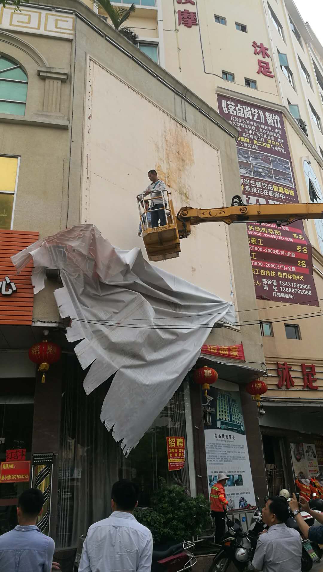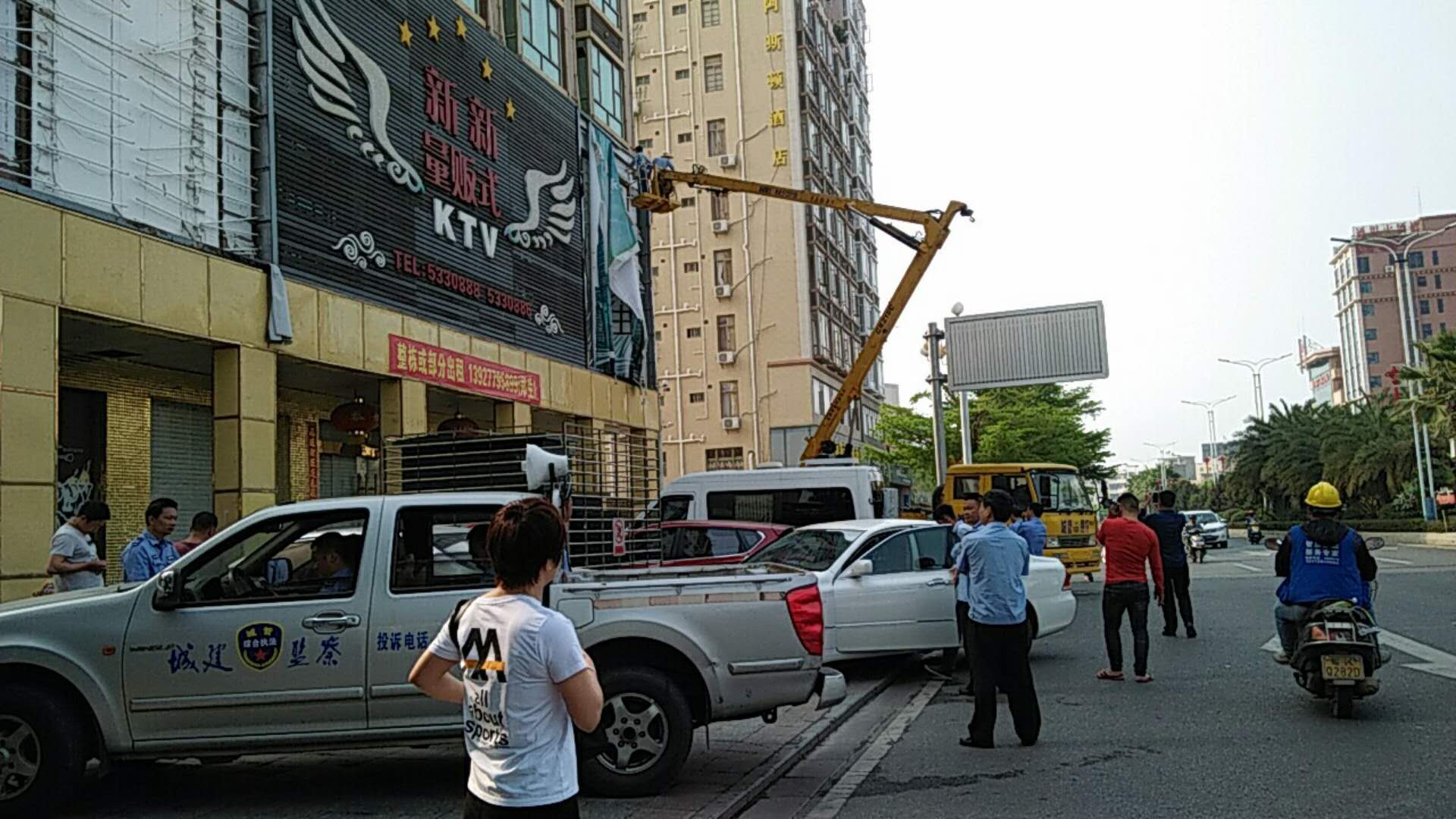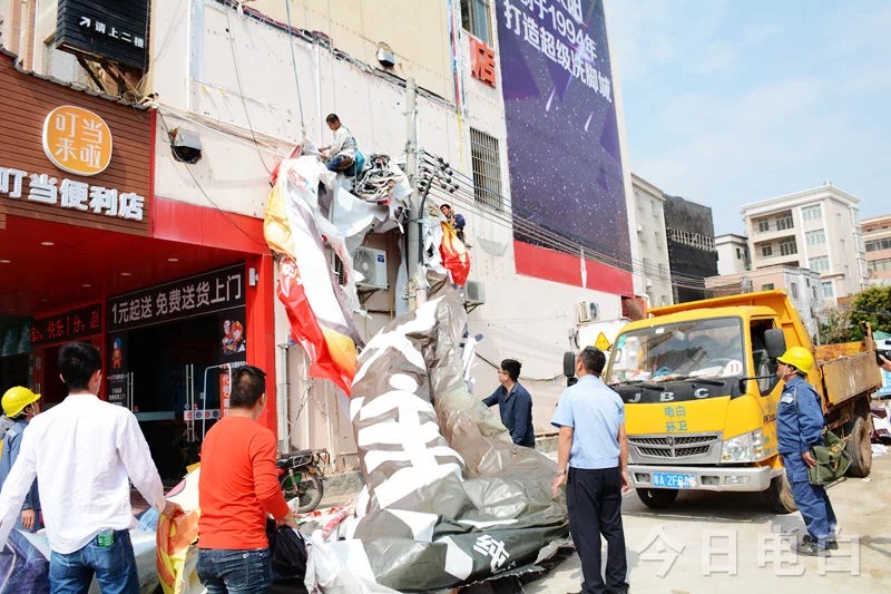 城区“六乱”整治又有大动作!这条街要“大变身”~。 为深入开展创建全国文明城市工作,营造整洁有序、优美文明的城市环境,从3月26日起,电白区创文办、区城管局联合牵头组织相关单位,在城区开展为期5天的整治联合执法行动,重拳整治城区乱搭乱建、乱摆乱卖、乱停乱放、乱拉乱挂、乱堆乱挖、乱张乱贴等“六乱”现象。执法行动首日,相关部门就出动执法人员90多名,高空作业车一辆,对区城海滨大道的户外违规广告牌、横幅、“牛皮癣”等进行清理,对占道经营以及乱堆乱放物品依法实行暂扣。同时,对涉及“六乱”违规人员和企业商户进行批评教育,并对沿街商铺逐户进行“创文”宣传,呼吁大家支持并积极参与创建全国文明城市活动。