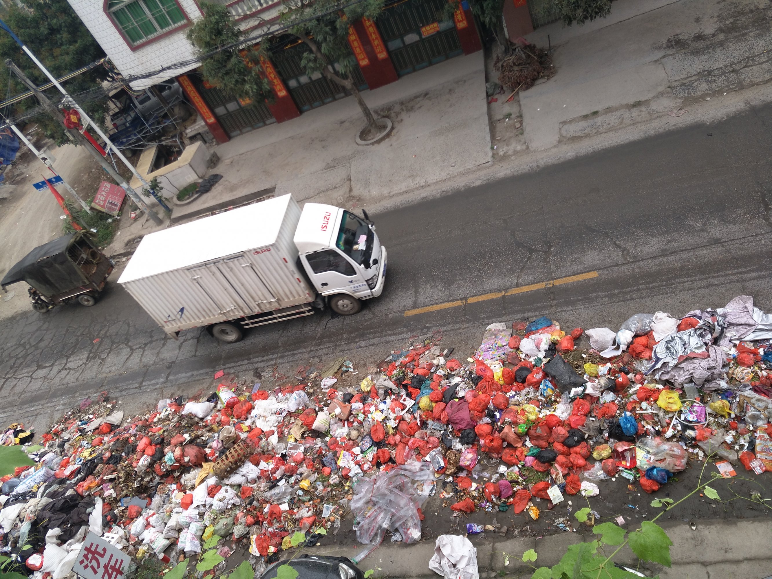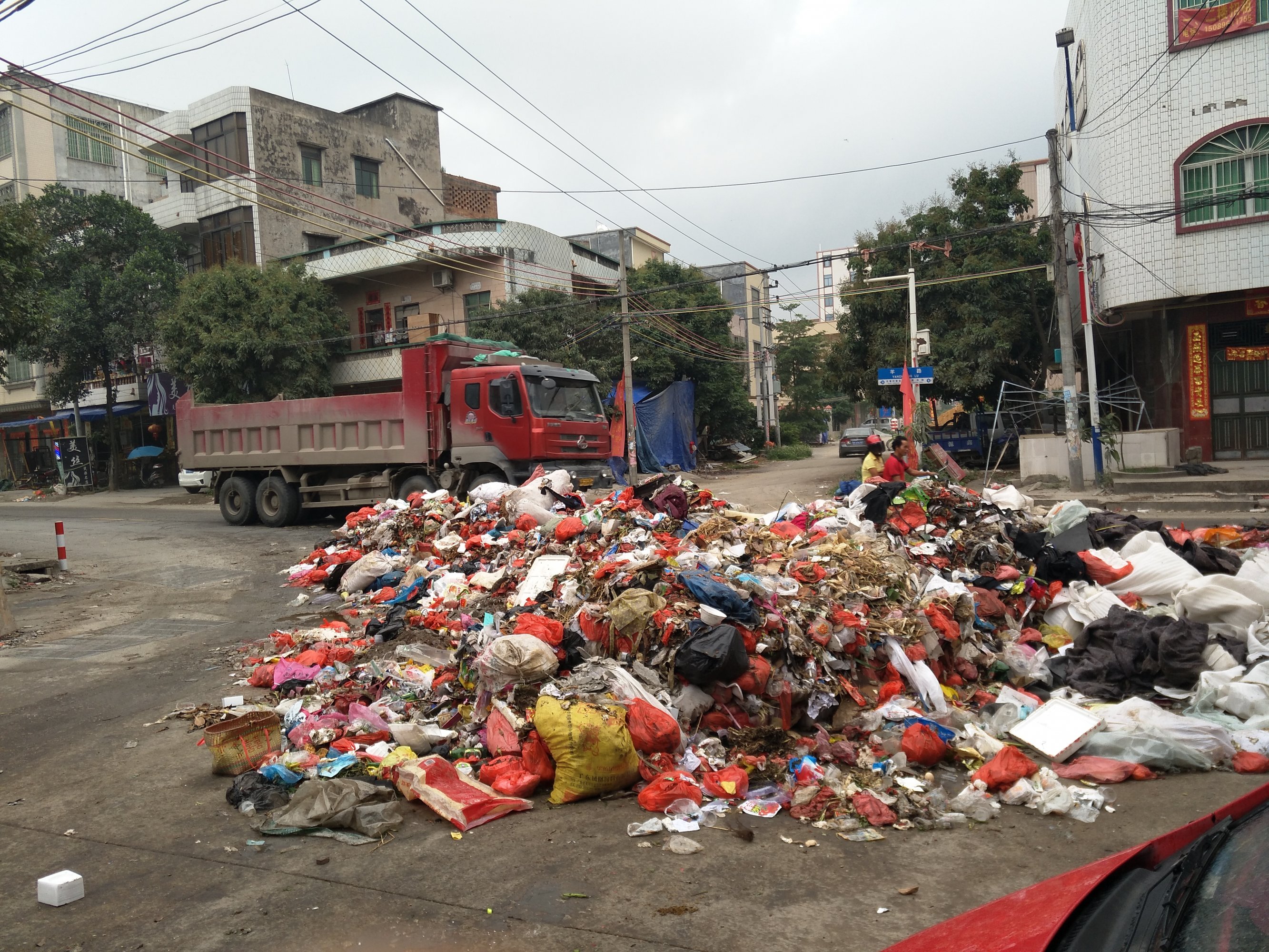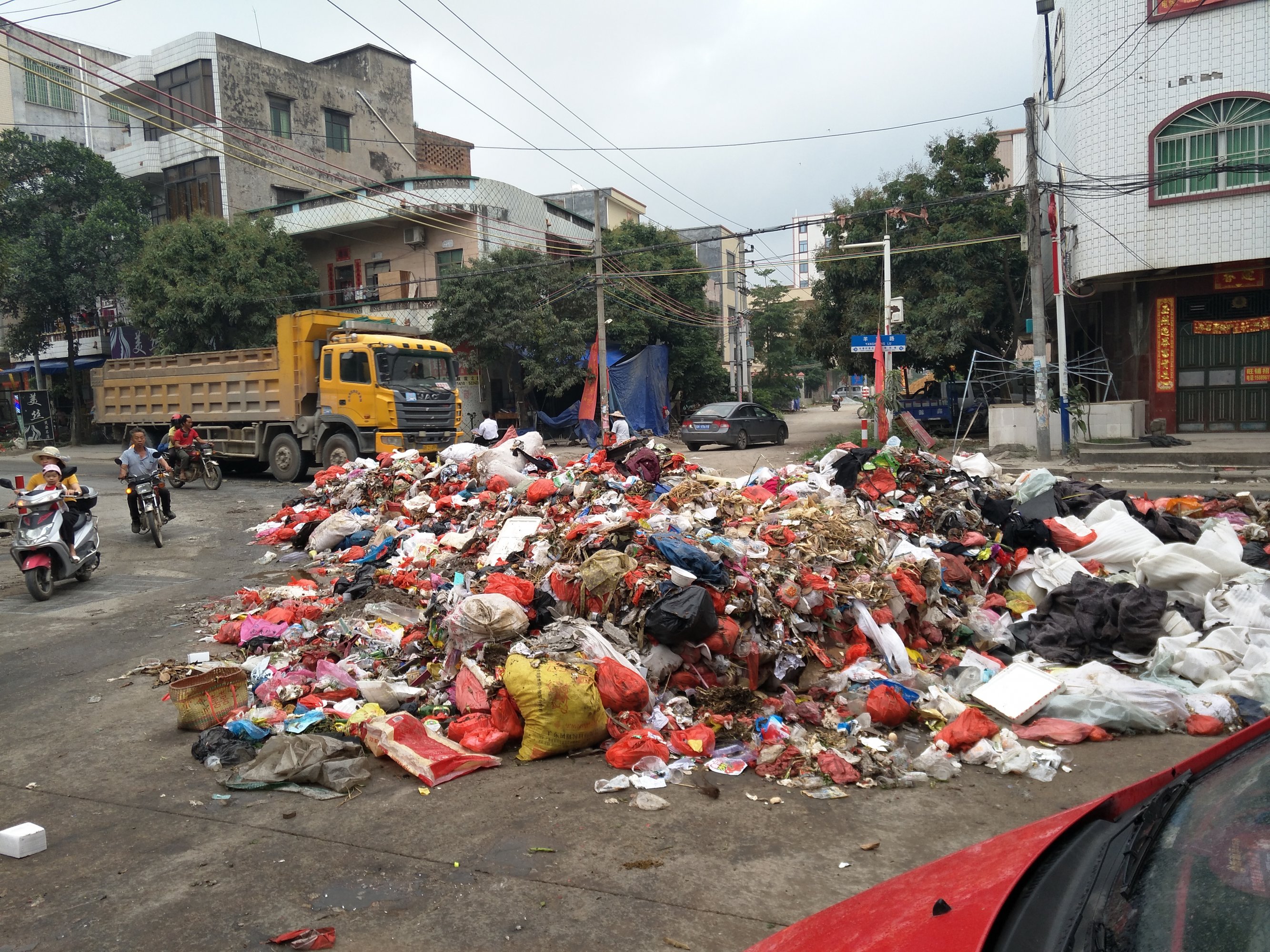 又有那个镇不是这样的?都是日常的一次性生活垃圾太多了,塑胶袋方了大便方了小便,背后的故事还很长很烦,特别是年例过后更是家家比赛谁家垃圾多,快乐现在,造福子孙。 墟镇如此,农村更不用说了,因为有河水冲冲更健康,更加几个猪场,真是不知怎说。 现在要解决这个垃圾问题,只有一个方法,就是上面有人来视察检查之类就行了,只是可怜了镇干部和村委干部早早起床当环卫工。