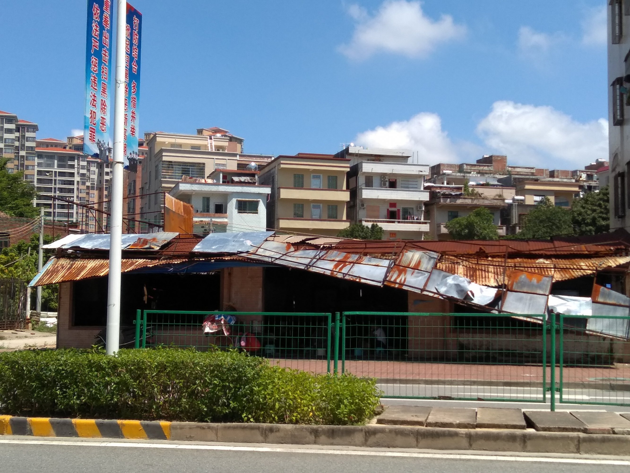 台风“山竹”幸好没打电白来,但是文昌鸡招牌已垂垂欲下不堪一击,路人随时会遭殃。现在创文明卫生城市,城建监察车每天路过好几回都无动于衷,村霸又不自行处理威胁路人,政府不敢动他们东西那等到砸死人时再看戏。