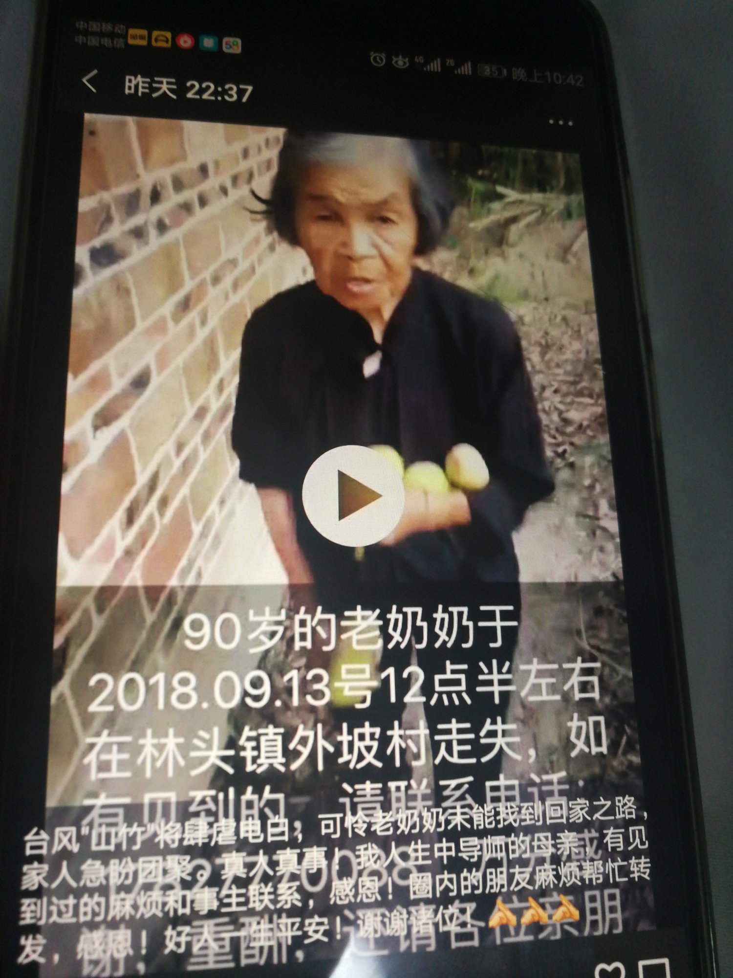 真人真事!朋友的母亲,有见到过的麻烦和事主联系,感恩!好人一生平安!蔡瑶:18027775673,重酬