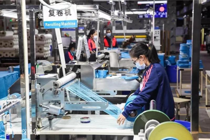 江门市工信局等相关部门、新会区政府闻讯赶来,牵线搭桥解决实际问题。1月23日顺利复产,15天后稳定达产,舒而美公司的迅速复产达产,大大缓解了口罩供应紧缺的局面。