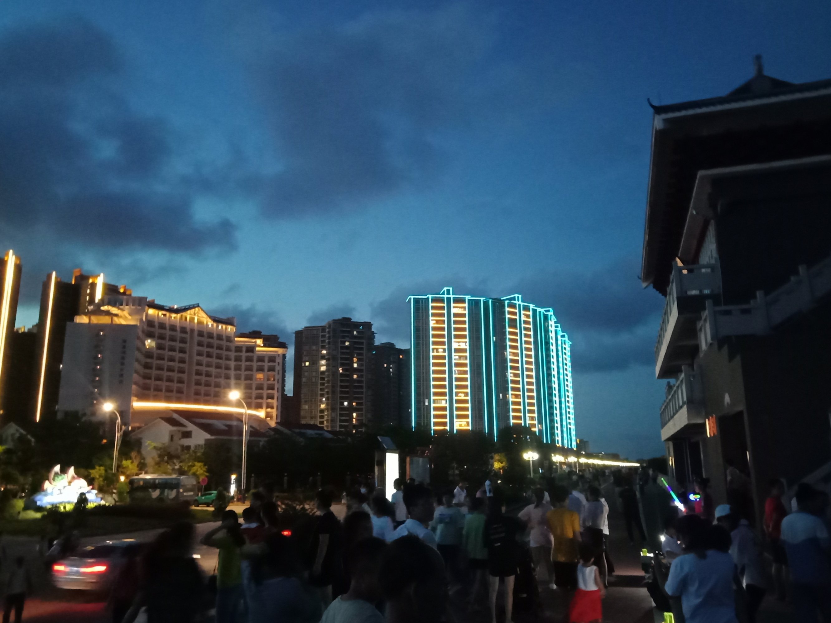 唉,连观鹭阁上的彩灯不亮了,还连旁边的观海长廊路灯也不亮了,都不知啥意思,