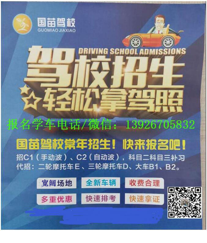 报名学车联系电话/微信:13926705832