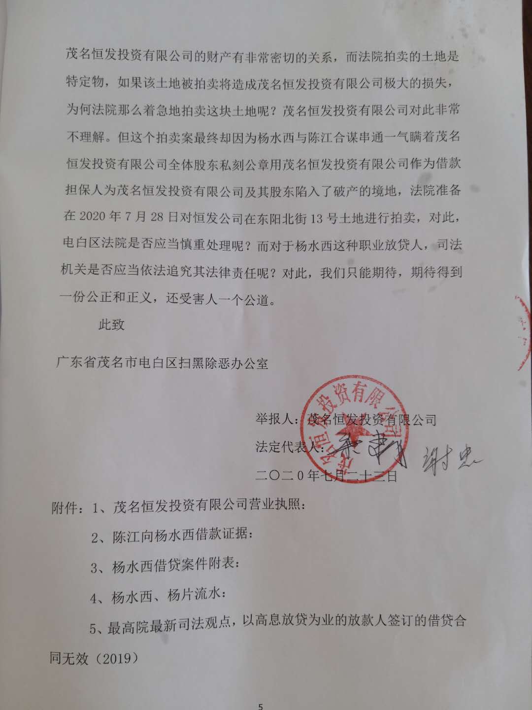 实名举报电白区职业放贷人杨水西非法放贷套路贷几家公司入圈套的举报信