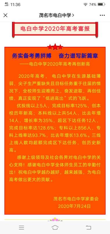 今年高考,电白中学上千学生报考,上线才几人?电白中学不以为耻,反而以家委会的名义玩弄文字游戏,自吹自擂。